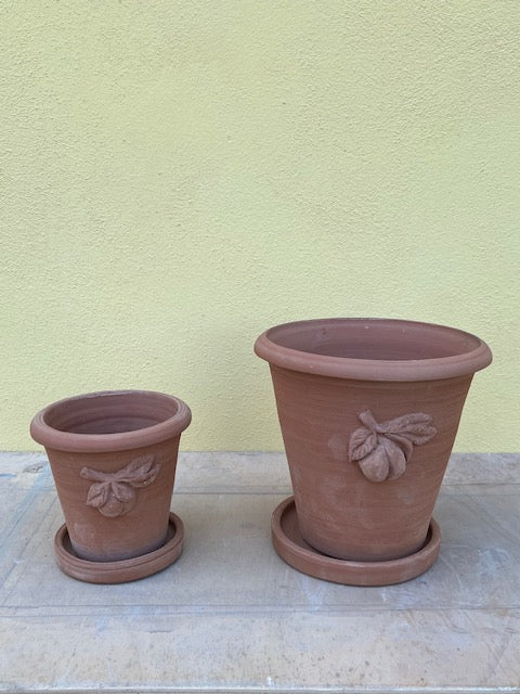 Our connoisseur’s collection of pots is a series of heirloom pots designed by John and entirely hand crafted by an exceptionally masterful Italian potter. Each pot is hand thrown of refined Impruneta clay and then a hand molded appliqué’ is added before the pot is fired.