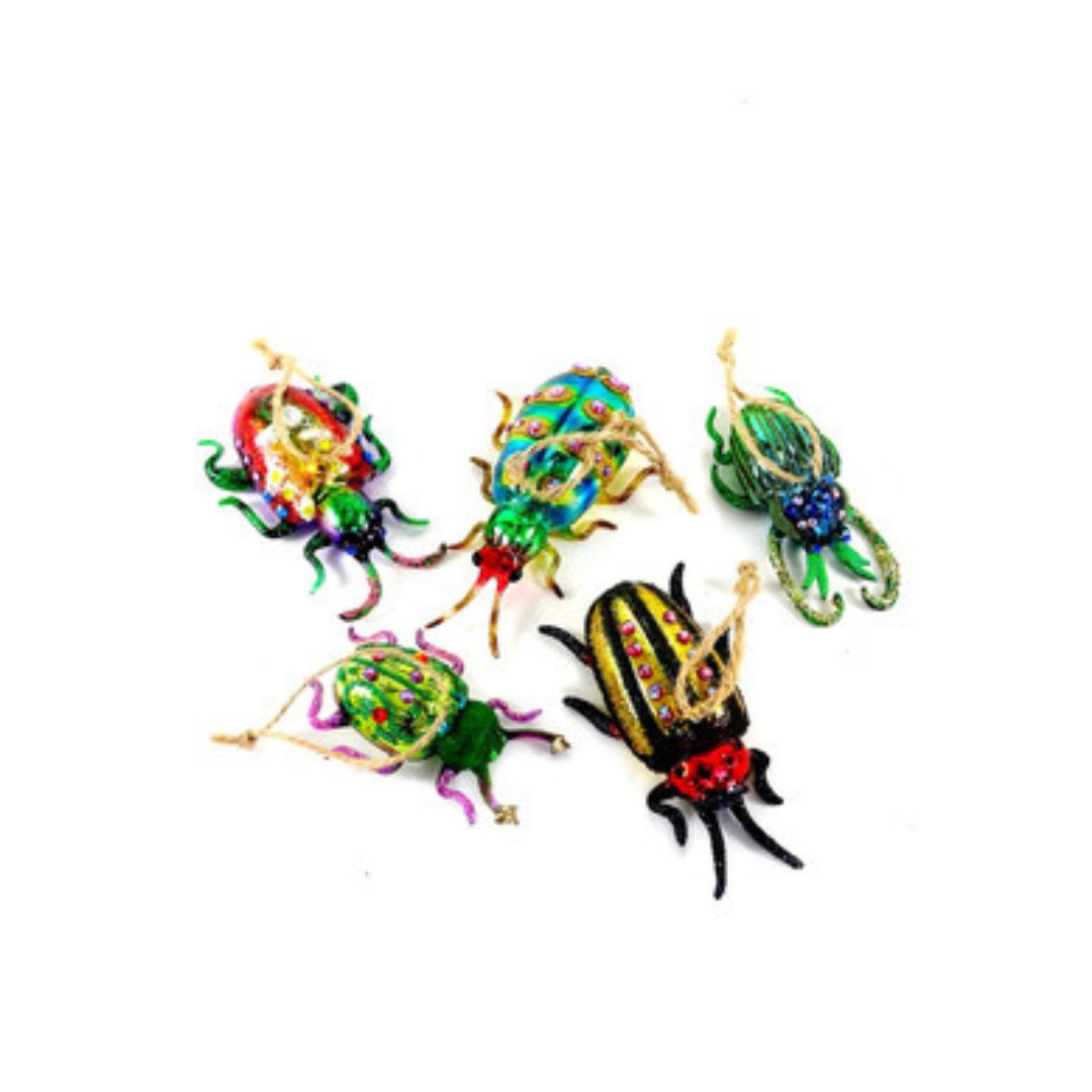 Available in a variety of colors, these glittered and faux jeweled hand blown glass beetle ornaments are the kind of bugs you’ll want to have crawling around. Garden lovers will delight in the colorful designs of these fun insect ornaments.