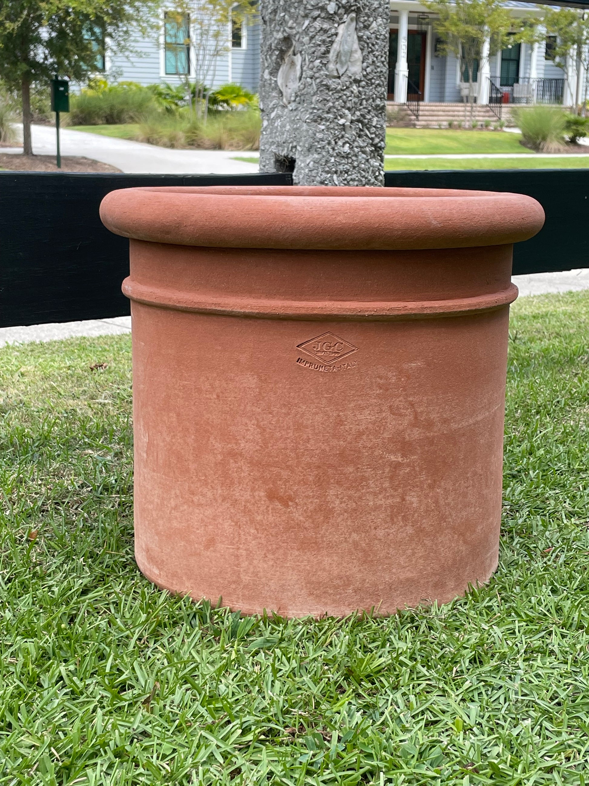 Our rolled rim cylinder features a smooth thick walled cylindrical body with a heavy rolled rim. It’s a substantial container especially nice for shrubs and small trees.